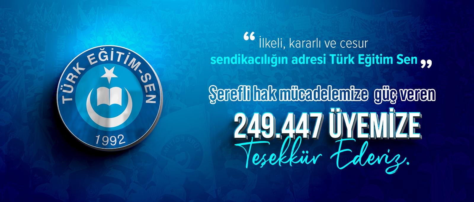 Türkiye’nin sendikası Türk Eğitim Sen’e omuz verdikleri için 249.447 üyeme teşekkür ediyorum.