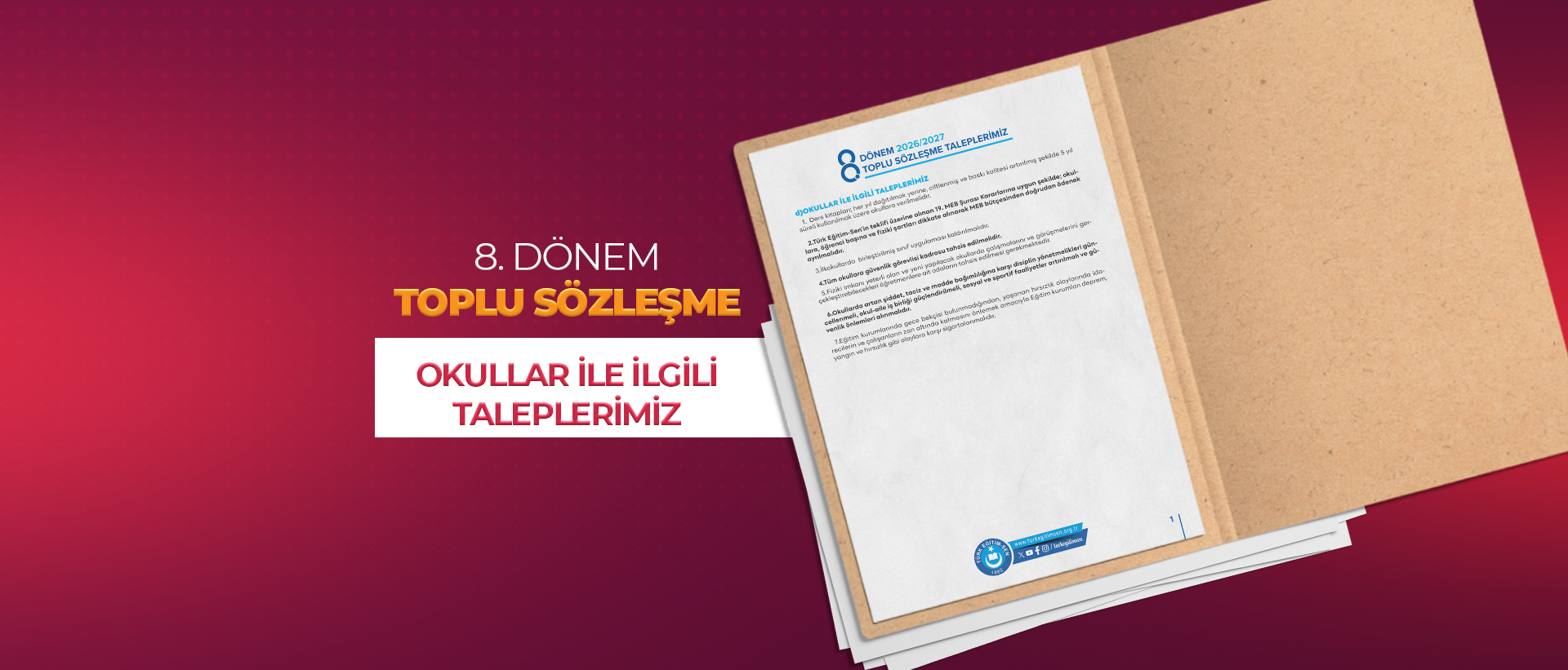 8.DÖNEM TOPLU SÖZLEŞME OKULLARA YÖNELİK TALEPLERİMİZ