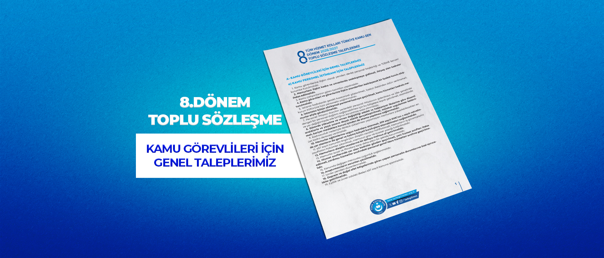 Bu kapsamda, 8. Dönem Toplu Sözleşmede tüm hizmet kollarının ortak talebi; ek zam yapılması, maaş artışlarında refah payı uygulamasına geçilmesi, enflasyon farkı maaşlara aylık yansıtılması, ekonomik gerçekler dikkate alınarak gelir vergisi adaletsizliği giderilmesi ve 3600 ek gösterge konusunun bir an önce çözüme kavuşturulmasıdır.