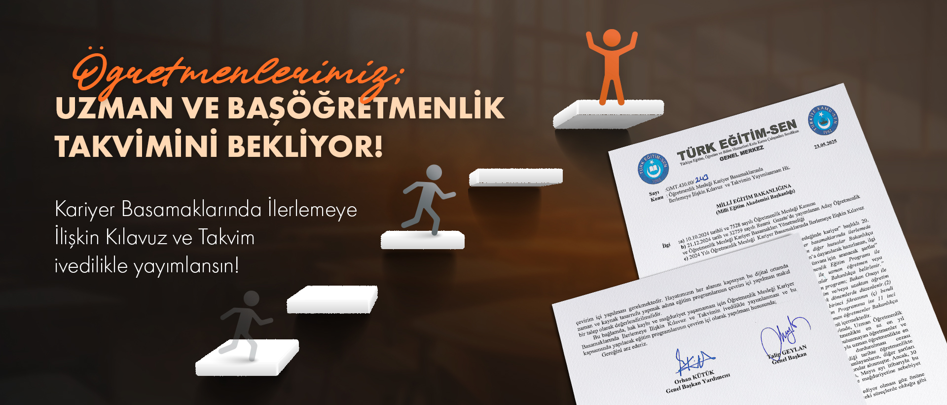 Bu bağlamda, hak kaybı ve mağduriyet yaşanmaması için Öğretmenlik Mesleği Kariyer Basamaklarında İlerlemeye İlişkin Kılavuz ve Takvimin ivedilikle yayımlanması ve bu kapsamında yapılacak eğitim programlarının çevrim içi olarak yapılması hususunda MEB’e talepte bulunduk.