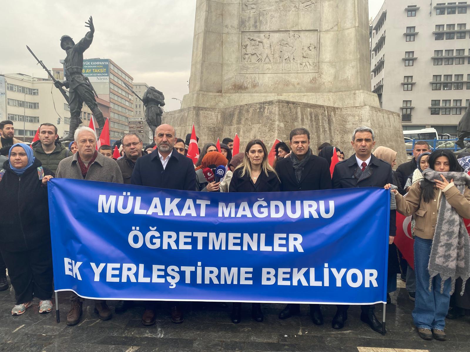 Mülakat mağduru öğretmenler de yaptıkları konuşmada, “20.000 öğretmen atamasında, 245 komisyon tarafından yapılan mülakat süreçlerinde yaşanan sistemsel hatalar, iller ve komisyonlar arasındaki bariz puanlama farklılıkları atanma hakkı olan birçok öğretmen adayını mağdur etmiştir. Öğretmenlik mesleği gibi stratejik bir alanda, emek veren adayların hakkının teslim edilmesi son derece önemlidir. Yetkili makamlardan talebimiz biz öğretmenlerin sesine kulak vermeniz ve bu mağduriyeti çözecek adımları bir an önce atmanızdır. Herhangi bir yöntem ve modelle bu sorunun çözülmesi için üzerinize düşen sorumluluğu yerine getirmenizi bekliyoruz” dedi.