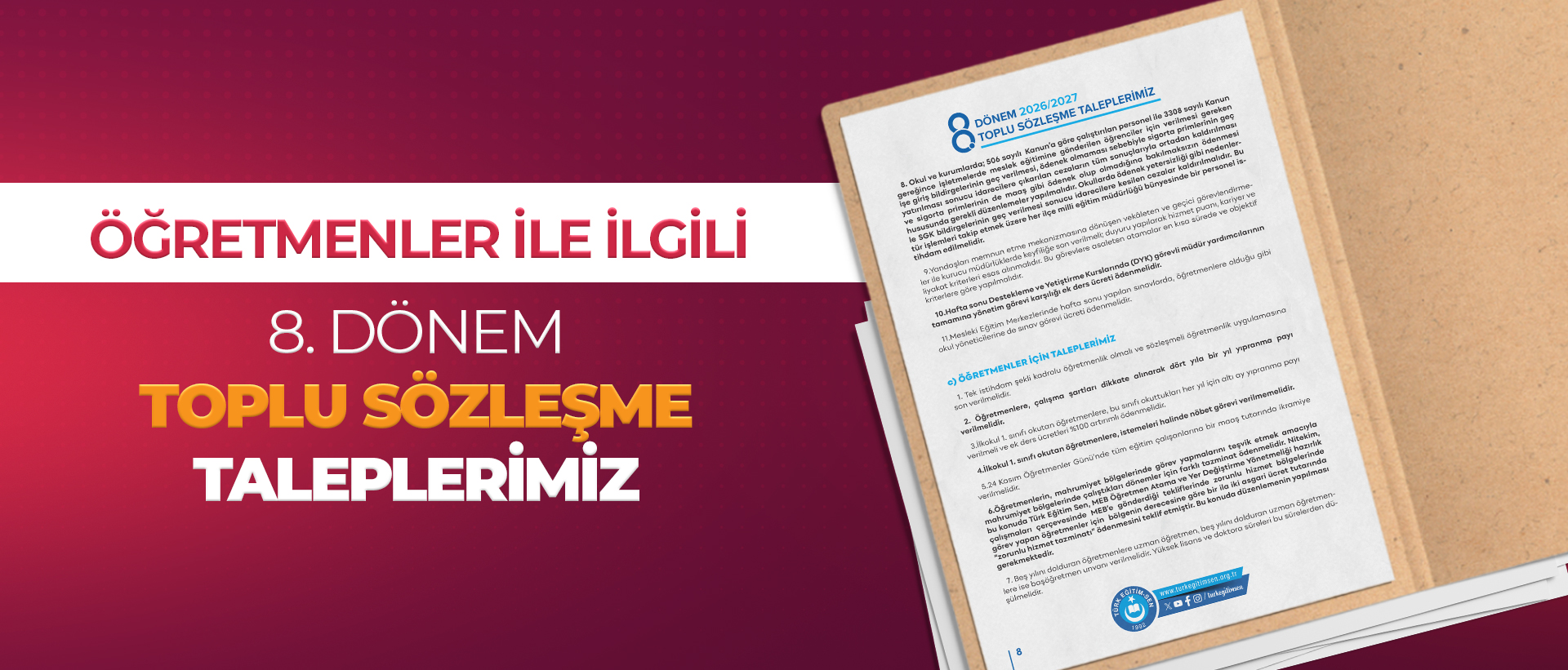 ÖĞRETMENLER İLE İLGİLİ 8.DÖNEM TOPLU SÖZLEŞME TALEPLERİMİZ