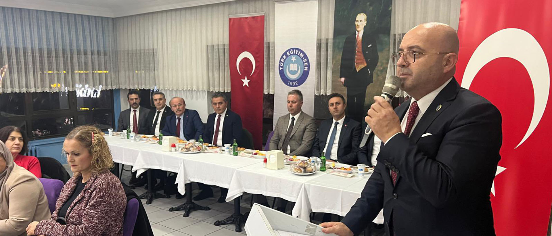 Toplantılarda bir konuşma yapan Genel Başkan Yardımcımız Erhan Bayram, Öğretmenlik Meslek Kanunu hakkında önemli açıklamalarda bulundu. Bayram, “Öğretmenlik Meslek Kanunu’ndaki eksiklikleri tespit ederek, kanunun içinin doldurulması noktasında gayret gösterdik. Kariyer basamakları sınavının kaldırılması, eğitimcilere yönelik şiddetin önlenmesi için yasal düzenleme yapılması, 20 yıl ve üstü kıdemi olan öğretmenlere uzmanlıkta bekleme şartı olmadan başöğretmen olma hakkı verilmesine ilişkin tarihi kazanımların elde edilmesine ciddi katkı verdik. Kısacası Öğretmenlik Meslek Kanunu’nun hazırlanması, çıkarılması ve önemli kazanımların elde edilmesinde Türk Eğitim Sen’in inkâr edilemez bir gayreti, emeği, alın teri var. Tabi mücadelemiz burada bitmedi. Taleplerimizin tamamı hayata geçirilene ve eksik bulduğumuz hususlara kulak verilene kadar sendikamız kanunla ilgili mücadelesini sürdürecektir.” dedi.