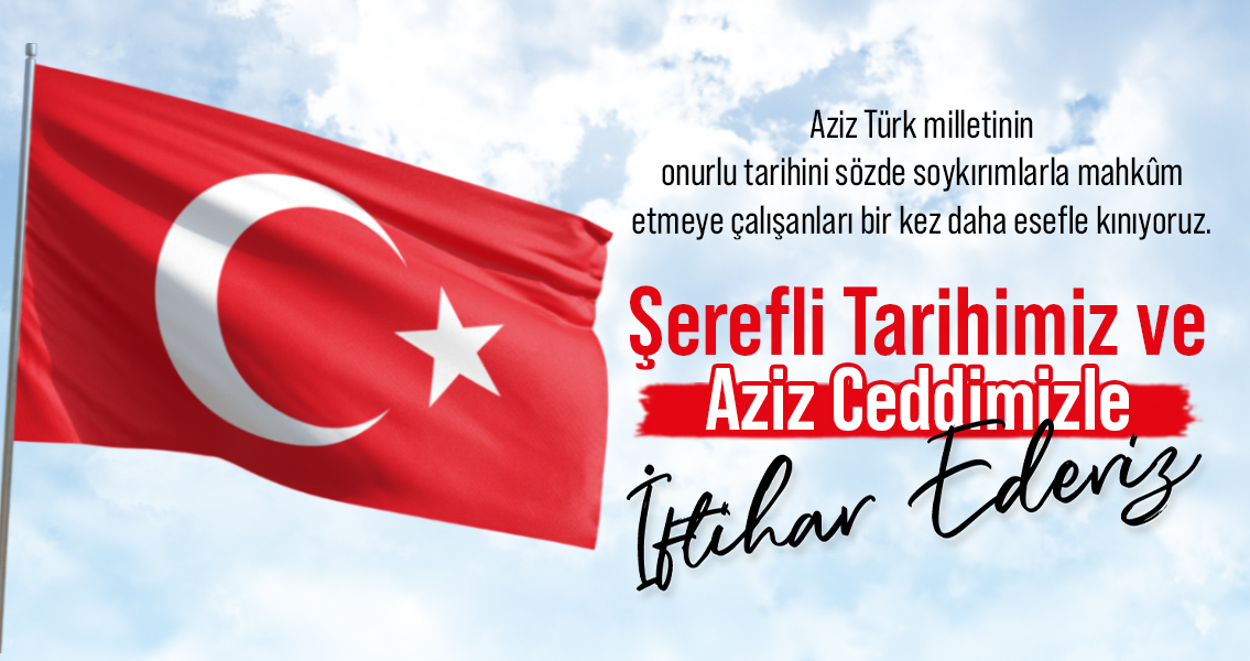 Türk’ün üzerinde onulmaz yaralar açmayı hedefleyenler, iftira kusarak, şan ve şerefle dolu tarihimizi yerle yeksan etmeye çalışanlar bilsin ki; tarihimiz ve ecdadımızla gurur duyuyoruz. Adaletle yönetilen topraklarımızda hiçbir dönem kıyım, katliam ya da soykırım gerçekleşmemiş, asla ve kat’a masum ve mazlum kanı dökülmemiş, Türkler hiçbir mezalimin öncüsü, uygulayıcısı ya da savunucu olmamıştır” diye konuştu.