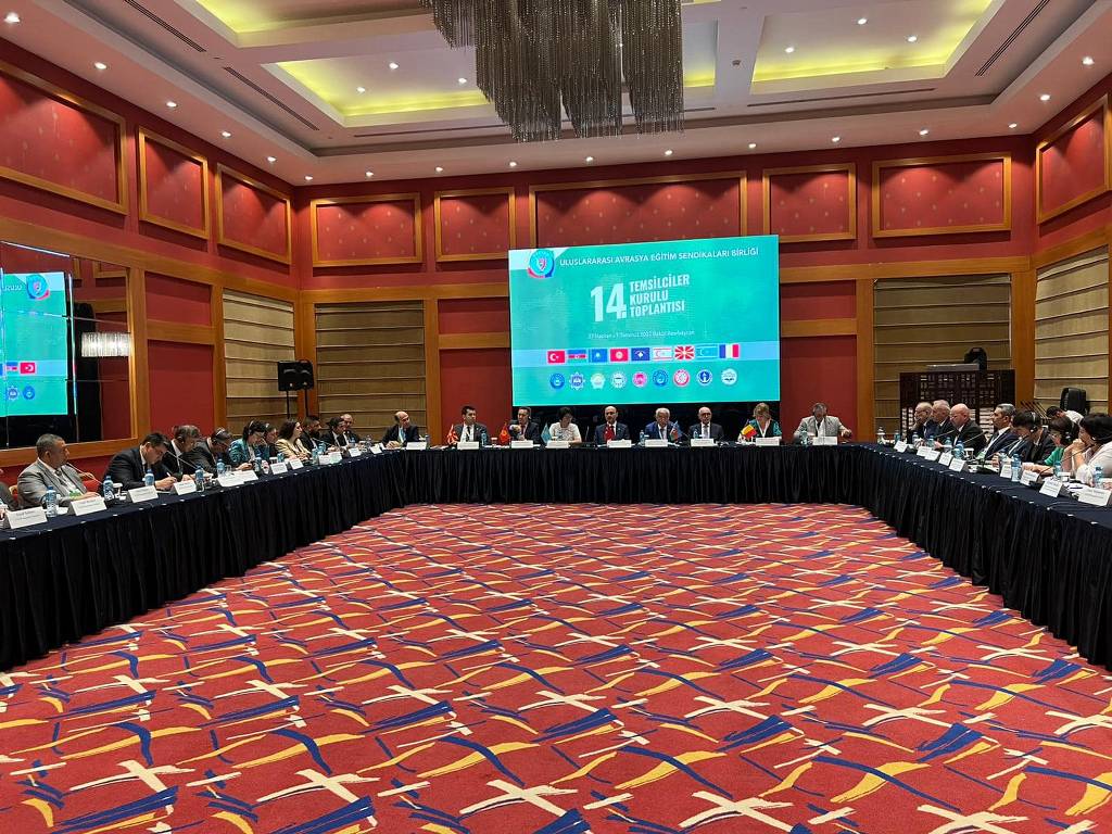 Uluslararası Avrasya Eğitim Sendikaları Birliği (UAESEB) 14. Temsilciler Kurulu Toplantısı, 28.06.2022 tarihinde Bakü’de başladı. Türkiye, Azerbaycan, Kazakistan, Kırgızistan, Özbekistan, Romanya, Makedonya ve KKTC’den gelen eğitim sendikası temsilcileri hem Türk Dünyası’nın sorunlarını hem de salgın sonrası eğitimin geleceğini masaya yatırdı.
